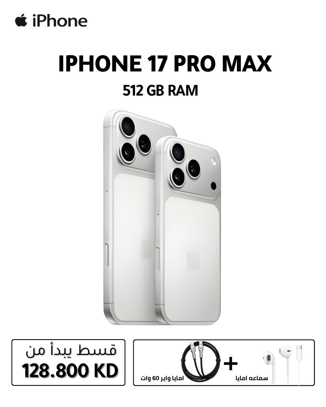 ابل آيفون 17 Pro Max (512 جيجابايت) - مع خاصية Face ID