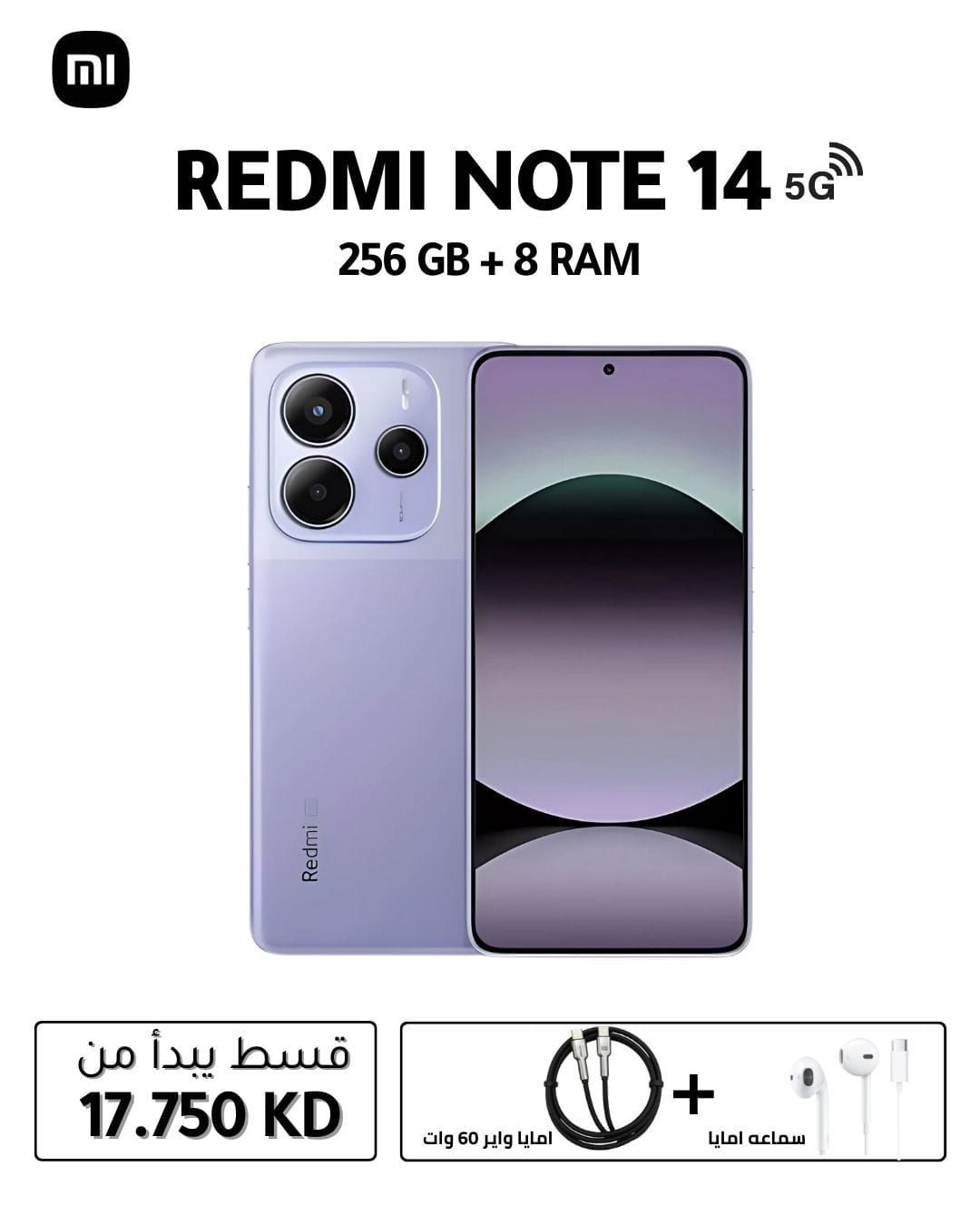 هاتف شاومي ريدمي نوت 14 ثنائي الشريحة – سعة تخزين 256 جيجابايت، وذاكرة وصول عشوائي 8 جيجابايت