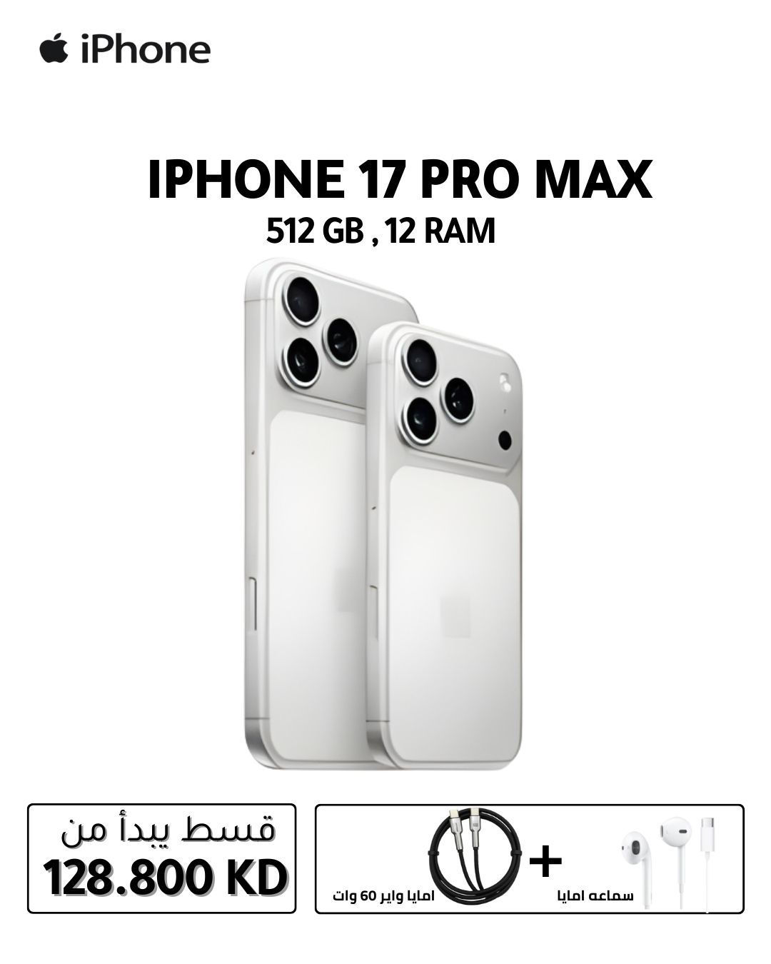 ابل آيفون 17 Pro Max (512 جيجابايت) - مع خاصية Face ID